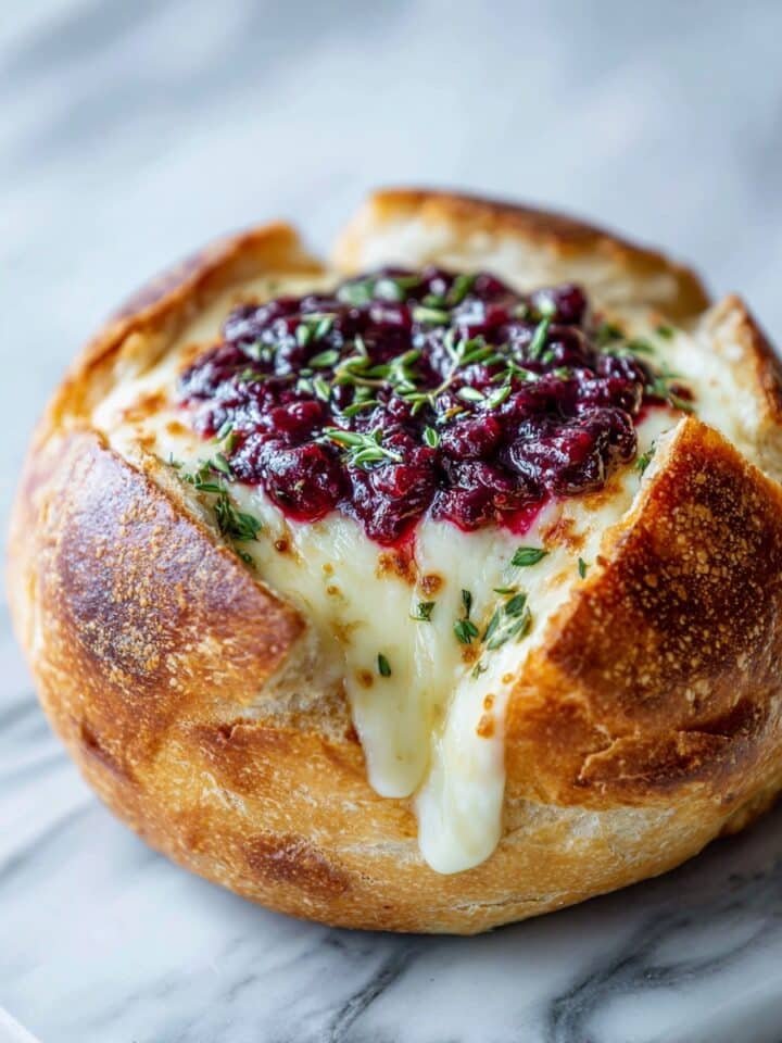 Garlic Herb Sourdough Bread Stuffed with Brie and Cranberry Sauce Recipe