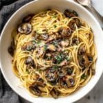 A quick and flavorful Mushroom Spaghetti Aglio Olio recipe that combines tender spaghetti with sautéed button and oyster mushrooms, infused with garlic, chili flakes, and a touch of Parmesan cheese for a perfect 15-minute meal.