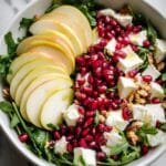 A refreshing Apple Pomegranate Salad featuring crisp honey crisp apples, juicy pomegranate seeds, crunchy nuts, and tangy feta cheese, all tossed in a homemade balsamic honey dressing. Perfect as a light side or a healthy snack.