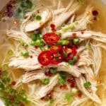 This recipe yields about 6 generous servings. To double, simply double all ingredients and use a larger pot. For half, halve the ingredients but the cooking time for the broth might slightly reduce—just keep an eye on the texture. Metric lovers: 2 lb of chicken is approximately 900 grams, and 10 cups water converts to about 2.4 liters, making scaling easy and precise.