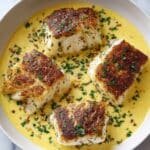 A light and flavorful baked cod recipe featuring tender cod fillets simmered in a creamy coconut and lemon sauce, perfect for an easy weeknight dinner.