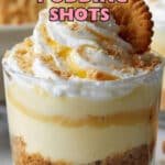 Delight in these creamy and boozy Banana Pudding Shots, a perfect party treat combining classic banana cream pudding with whipped cream vodka, layered over crunchy Nilla wafers and topped with fresh banana slices for a fun and delicious dessert shot.