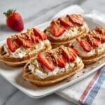 Delight in the crispy, buttery goodness of Biscoff Strawberry Croffles, combining flaky croissant dough cooked in a waffle iron with luscious Biscoff whipped cream, fresh strawberries, and crunchy cookie toppings for a sweet and satisfying treat.