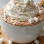 - Serve: Pour the warm hot chocolate into a mug and enjoy immediately. Optionally, top with marshmallows, whipped cream, or both for extra indulgence.