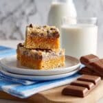 Delicious Butterfinger Cookie Bars featuring a soft, chewy cookie base loaded with chopped Butterfinger bars, topped with a creamy peanut butter frosting and more Butterfinger crunch. Easy to make and perfect for satisfying your sweet tooth with a delightful peanut butter and chocolate candy blend.