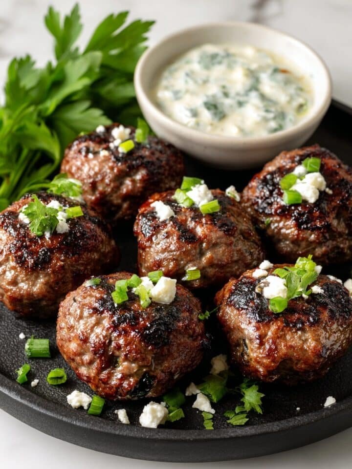 Spicy Greek Lamb Meatballs with Creamy Green Herb Dip Recipe