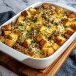 A hearty and delicious Breakfast Casserole featuring savory sausage, melted Cheddar cheese, and soft bread cubes baked in a flavorful egg custard. Perfect for a comforting morning meal or brunch.