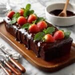Assemble Pumpkin Patch Brownies: Remove the cooled brownie slab from the pan using the parchment overhang. Spread the chocolate ganache evenly over the top. Arrange the candy-coated strawberries on each brownie piece, pressing gently to secure. Garnish with fresh mint or basil sprigs around the strawberries to resemble pumpkin vines.