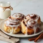 Glaze and serve: Let rolls cool slightly in pan, then spread cream cheese glaze over warm rolls. Serve immediately.