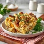 A comforting and easy Crockpot Turkey Pot Pie recipe using leftover turkey, mixed vegetables, and creamy gravy topped with savory stuffing, slow-cooked to perfection for a warm and hearty meal.