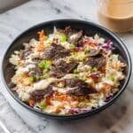 A hearty and flavorful Easy Reuben Bowl featuring tender corned beef, sautéed cabbage and sauerkraut, melted Swiss cheese, and a creamy homemade Thousand Island dressing, all topped with fresh green onions. This dish is a low-carb twist on the classic Reuben sandwich, perfect for a comforting lunch or dinner.