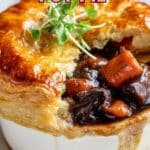 This recipe makes six individual pot pies using six 8-ounce ramekins—perfect for family dinners or batch cooking. Want to double it? Simply multiply ingredients by two and use larger baking dishes or more ramekins. Metric conversions: 1 cup flour = 120 grams, 1 pound beef = 454 grams, 2 cups broth = 480 ml.