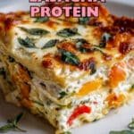A nutritious and delicious high-protein veggie lasagna featuring zucchini, bell peppers, spinach, and a blend of creamy cheeses. This recipe layers sautéed vegetables with ricotta, mozzarella, and parmesan, baked to golden perfection for a satisfying vegetarian main course.