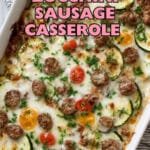 A flavorful Keto Zucchini and Sausage Casserole featuring tender zucchini slices, savory Italian sausage, and melty mozzarella and Parmesan cheeses, baked to golden perfection. This low-carb casserole is creamy, comforting, and perfect for a satisfying main course.