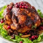 A flavorful maple cranberry roast chicken featuring a juicy whole chicken seasoned with smoked paprika, garlic, and thyme, then glazed with a sweet and tangy maple cranberry sauce. Perfect for a cozy dinner or special occasion.