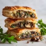 This Mushroom Strudel with Leeks and Parmesan Cheese is a savory, flaky pastry dish featuring a rich filling of cremini and shiitake mushrooms, tender leeks, and fresh garlic, all bound together with butter and a beaten egg, and finished with fragrant Parmesan cheese. Perfect as an appetizer or a vegetarian main course, this recipe highlights earthy mushroom flavors complemented by the delicate sweetness of leeks wrapped in buttery, golden phyllo pastry.