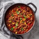 A hearty and flavorful One-Pot Beef and Vegetable Chili combining ground beef, beans, and vegetables simmered with chili spices for a comforting meal.