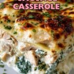 A creamy and flavorful chicken and spinach casserole featuring tender chicken breasts baked with a rich cream cheese and mozzarella topping, perfect for a comforting and satisfying meal.