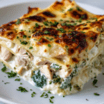 A creamy and flavorful chicken and spinach casserole featuring tender chicken breasts baked with a rich cream cheese and mozzarella topping, perfect for a comforting and satisfying meal.