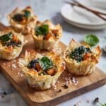 These Pumpkin Feta Phyllo Cups are a delightful appetizer combining tender sautéed pumpkin, creamy feta cheese, and fresh spinach wrapped in crisp, buttery phyllo pastry. Perfectly seasoned and optionally drizzled with honey, they bring a wonderful balance of savory and sweet flavors with a crunchy texture.