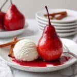 Red Wine Poached Pears are a classic and elegant dessert featuring tender pears simmered in a spiced red wine and orange juice mixture, sweetened with honey and infused with cinnamon and cloves. This simple yet sophisticated recipe results in delectable, aromatic pears perfect for serving warm with whipped cream or vanilla ice cream.