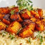 A creamy and comforting Roasted Butternut Squash Risotto made with tender roasted squash, Arborio rice, white wine, and Parmesan cheese, perfect for a delicious vegetarian main course or side dish.
