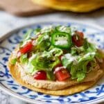 A quick and delicious recipe for Rotisserie Chicken Tostadas featuring crispy corn tortillas topped with refried beans, shredded rotisserie chicken, fresh vegetables, and customizable toppings. Perfect for a satisfying lunch or dinner.