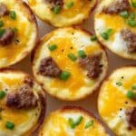 Sausage and Egg Breakfast Cups are a convenient and delicious way to enjoy a protein-packed breakfast. These savory cups combine fluffy eggs, cooked breakfast sausage, shredded cheddar cheese, and fresh green onions, baked to golden perfection in a muffin tin. Perfect for meal prep or a quick morning meal.