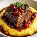 This Slow-Braised Beef Roast with Cranberry Balsamic Glaze is a hearty and flavorful dish featuring tender beef chuck roast slowly cooked with fresh cranberries, balsamic vinegar, and herbs. The roast is seared for a rich crust, then braised in the oven until meltingly tender. Finished with a tangy-sweet cranberry glaze, this comforting meal is ideal for a special dinner or festive occasion.