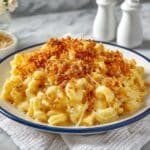 A classic creamy baked macaroni and cheese featuring a blend of sharp cheddar and Gruyère cheeses, smothered in a rich béchamel sauce and topped with a crispy buttery panko and Parmesan breadcrumb crust.