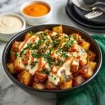 Patatas Bravas is a classic Spanish tapas dish featuring crispy fried potatoes generously coated with a spicy and smoky tomato-based Brava sauce, often served with a creamy garlic aioli and garnished with fresh parsley. This recipe guides you through making every component from scratch, delivering a perfect balance of textures and flavors.