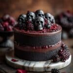This Spooky Black Velvet Halloween Cake is a dramatic, rich dessert perfect for Halloween celebrations. Featuring deep black velvet cake layers made with black cocoa powder, filled with a fresh blackberry compote, and topped with a creamy black cocoa cream cheese frosting, this cake is both visually stunning and delicious with gothic charm.
