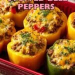 You can pre-make the stuffed peppers and store them covered in the fridge for up to 2 days before baking. To reheat, bake covered at 350°F until warmed through, about 20–25 minutes. For freezing, place stuffed (but not baked) peppers in an airtight container or freezer bag for up to 3 months. Thaw overnight in the fridge and bake as directed—this helps preserve texture and flavor without adding sogginess.