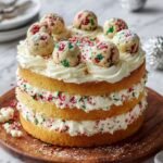 This festive Sugar Cookie Cake combines the best of sugar cookies and vanilla cake layered with luscious cream cheese frosting and decorated with colorful Christmas sprinkles, perfect for holiday celebrations or special occasions.