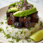 A vibrant and flavorful Tangy Honey Lime Chicken paired with fragrant Jasmine rice and a fresh avocado mix, layered into a visually impressive and delicious serving stack. This recipe balances sweet, tangy, and savory flavors with creamy avocado and aromatic herbs, making it a perfect dinner option that’s both easy to prepare and delightful to eat.