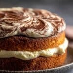 This Tiramisu-ish Layer Cake combines the rich flavors of traditional tiramisu in a delightful layered cake form. Featuring a moist vanilla cake soaked in espresso coffee, layered with creamy mascarpone frosting, and dusted with dark cocoa powder, this cake offers a luscious dessert experience perfect for special occasions or an indulgent treat.